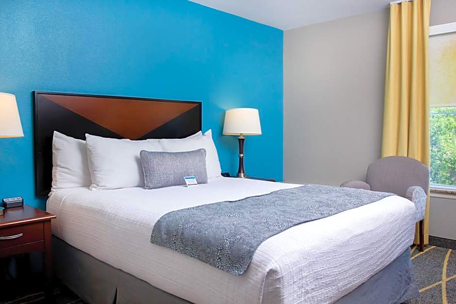 This king room features a fully equipped kitchenette with a refrigerator, microwave, and a coffee machine. Air conditioning, a pillow-top mattress, 32" LCD TV, desk, and ergonomic chair are provided. Complimentary toiletries are included in the private bathroom.